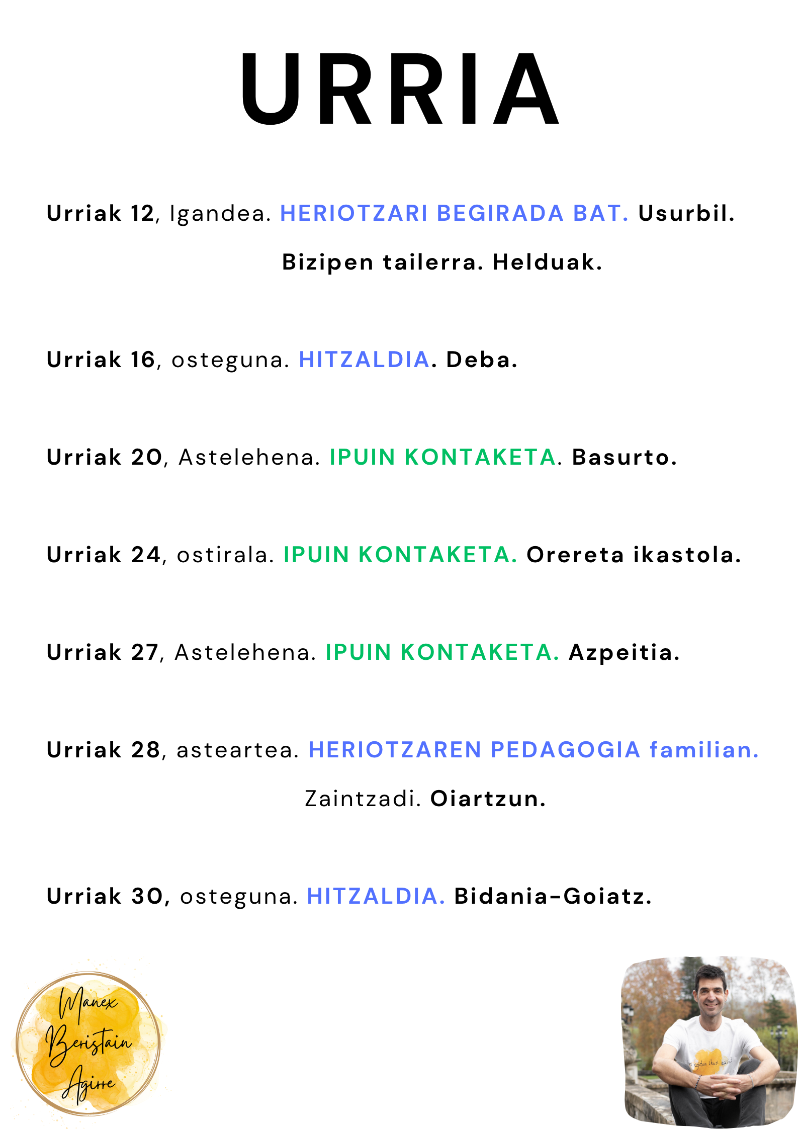 Heriotzaren pedagogiaren baitan, Mar Cortinaren onlineko formazioa burutua dut, “Heriotzaren garapen psikopedagogikoa haur eta nerabezaroan”. Horretaz aparte eta online baita ere, UAMen “Heriotzaren pedagogiaren praktika hezkuntzan” formazioa egin nuen eta azkenik Bidegin elkartea eta Baraka zentroak elkarlanean antolaturiko, “Heriotza eta doluan, haur eta nerabeengandik ikasten” bizipenezko formazioa egin nuen.